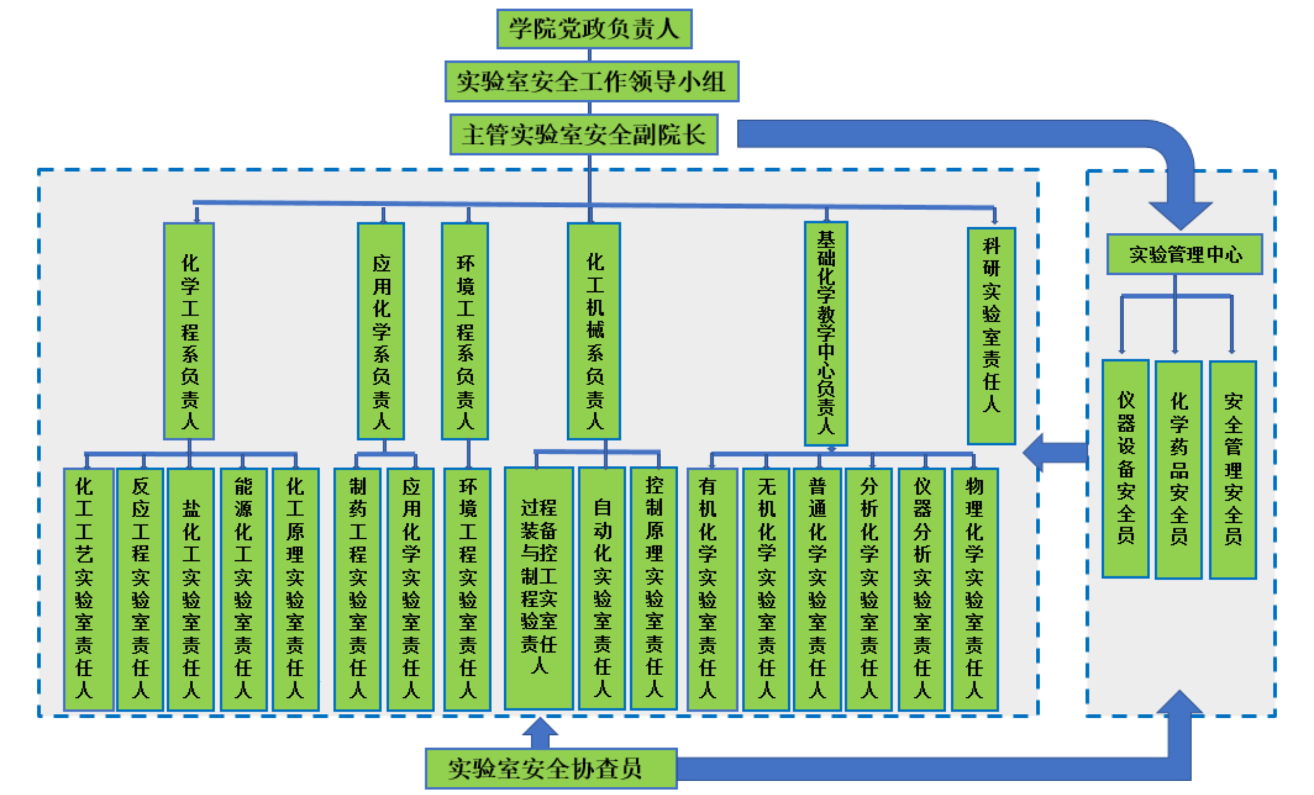 4.各系(部)安全负责人主要职责为组织各教研室对所开设教学实验内容的进行安全性评估,评估涉及设备安全操作、化学过程的风险控制等,同时需选用采用危险性较小、环保安全药品。督促各教研室实验室负责人做好实验室安全管理。