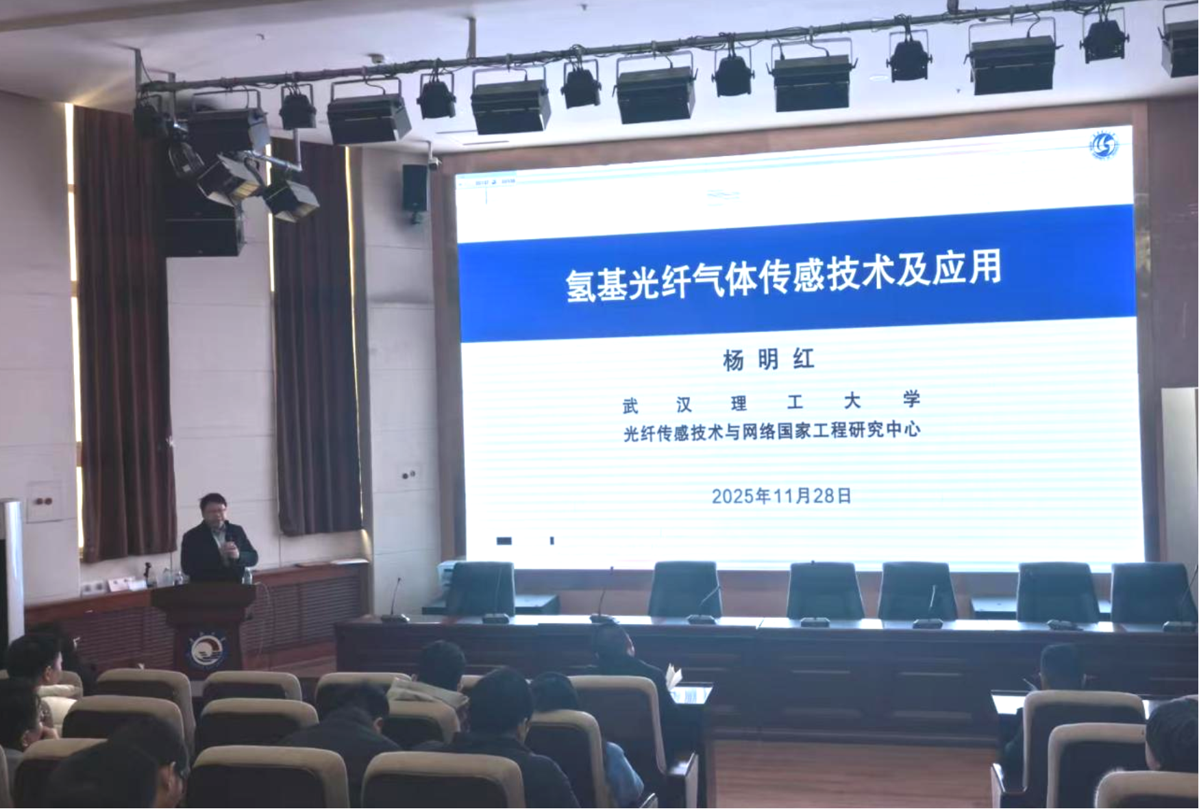 本次会议内容分为学术交流与基金申报交流两个部分,在学术交流部分,杨教授系统介绍了氢能发展的背景与科技需求,着重强调了氢安全的核心重要性,并深入阐述了氢气光纤传感技术、氢基多组分光传感器以及氢基多参量光纤传感器的原理、优势与创新成果,最后通过具体的应用案例和数据展示了其团队在氢安全监测领域的重要研究成果。在基金申报交流环节,杨教授就国家自然科学基金申请书的填写规范、选题与摘要的凝练撰写、以及立项依据的充分构建等方面进行了细致指导。与会人员就氢安全技术研究中的具体科学问题、实验难点以及国家基金申报过程中遇到的困惑进行了深入的探讨与解答。